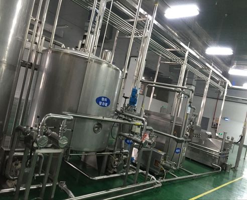 Tanque de fusão de açúcar -> filtro de açúcar -> tanque de mistura de suco -> homogeneizador de suco -> desaerador de vácuo -> tanque de armazenamento-> UHT esterilizador instantâneo de temperatura ultraalta-> tanque de aquecimento e resfriamento